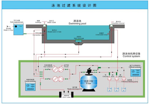 地埋式循環過濾系統是集泵房、過濾、投藥消毒等更能于一體的智能型循環過濾系統,改變了傳統的砂缸過濾方式。適合中、澳等多個國家公眾游泳池的標準,是專門用于500立方以上的大型公眾泳池、比賽泳池的過濾系統。 壁掛式和嵌入式原理和地埋式一樣,只是安裝方式不同。
